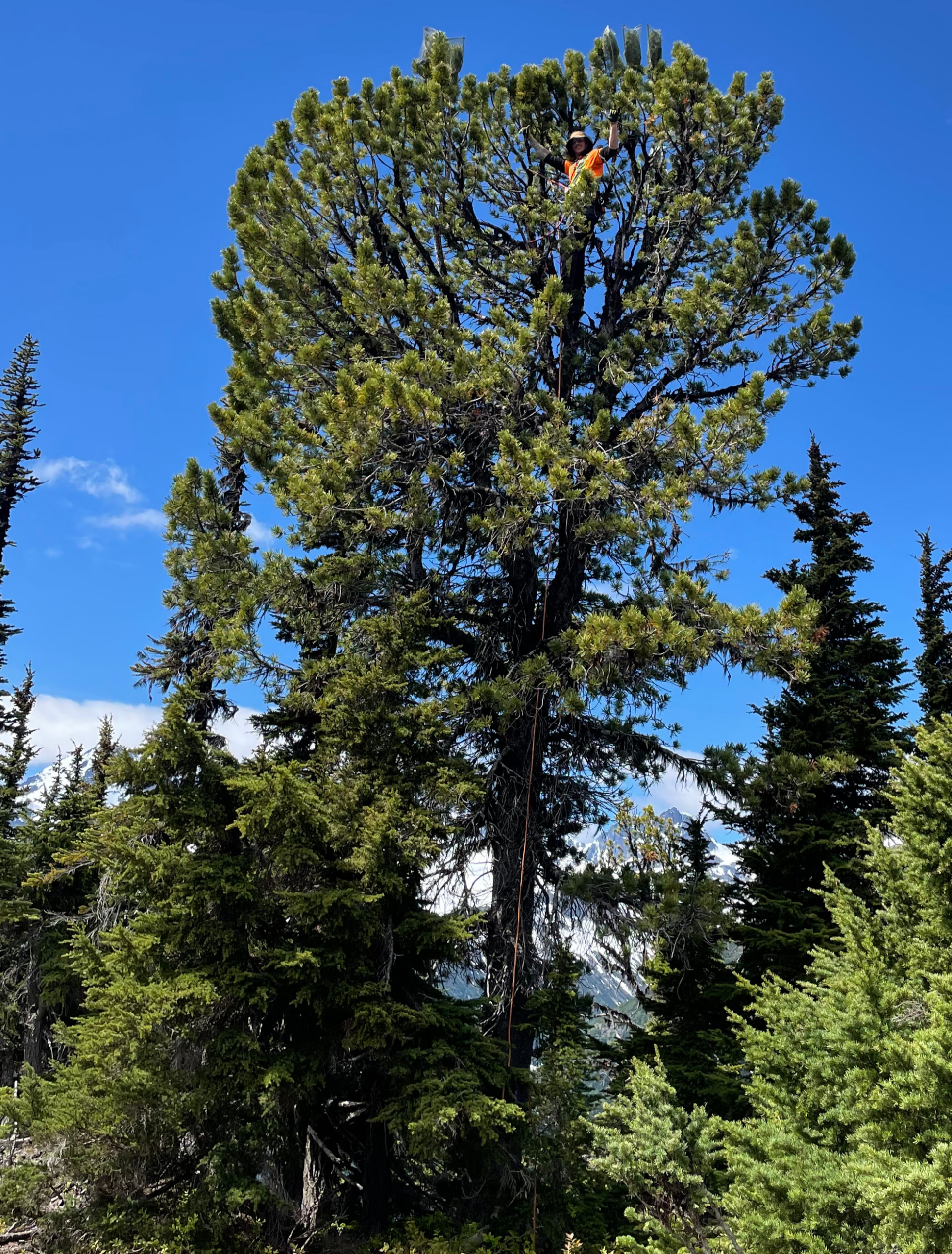 Our best-performing seed families so far include two families from Kidprice Lake in Nenikekh/Nanika-Kidprice Provincial Park, one family from Hunter Basin in the Telkwa Mountain Range and one family from the Rhine Crag mining road on Mount Sweeney. One of the Kidprice families (from a beautiful open-grown ridge-top tree known as K9), has the highest resistance to blister rust of any tree tested in British Columbia so far.