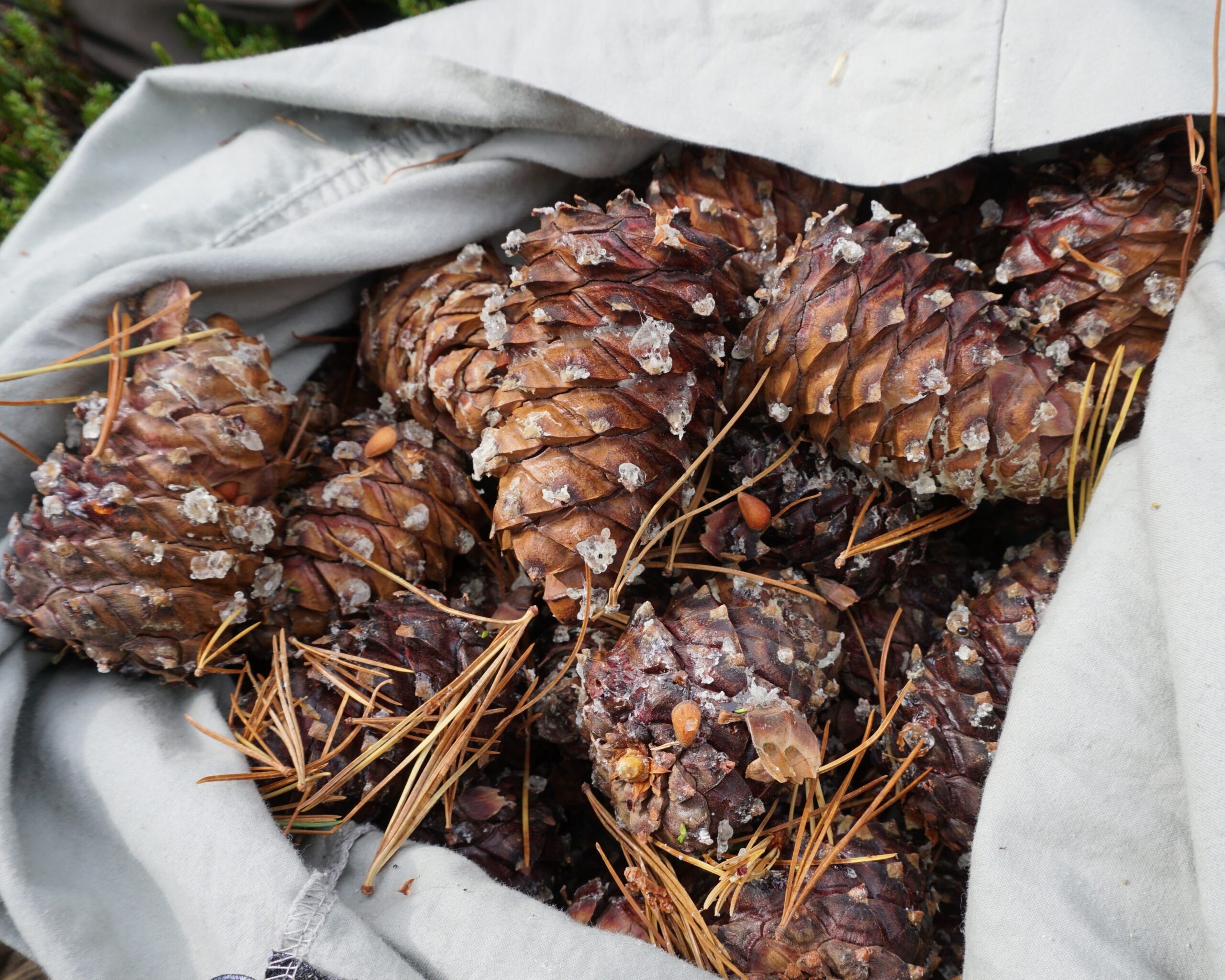 Dried seeds are stored at the BC Tree Seed Centre until they are needed. Operational seedlots that meet the Chief Forester’s Standards for Seed Use are registered in the SPAR system and are available for general restoration efforts. Please contact us to enquire about seed availability for northern BC whitebark pine restoration projects.