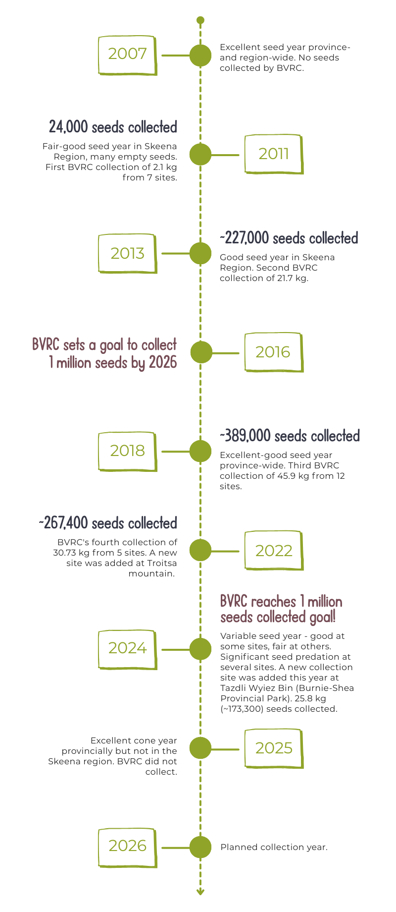 The Research Centre has been monitoring whitebark cone and seed crops in the Skeena Region since 2007.